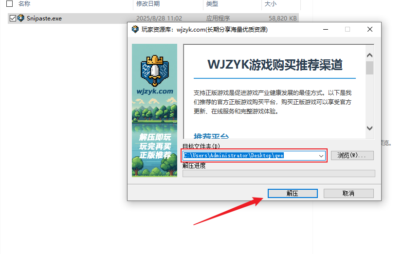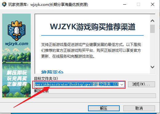 4. 点击“浏览…”按钮,选择解压目录,可以自定义解压文件夹。
